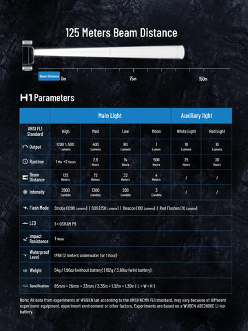 Versátil y de Alta Potencia: Con una salida máxima de 1200 lúmenes,la H1 proyecta un amplio haz de luz que ilumina sin esfuerzo su entorno, esto la hace ideal para una variedad de tareas.